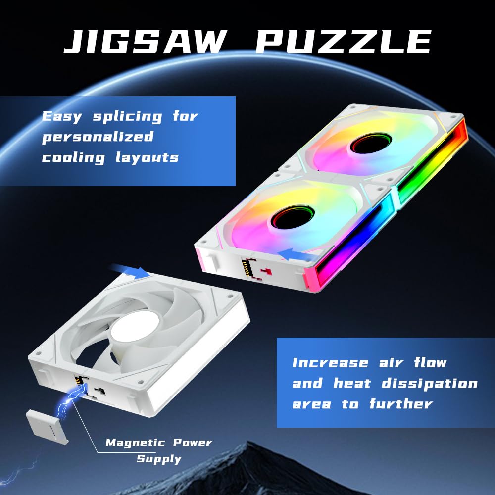 Daisy-Chain Interlocking Design: Slide-in, pin-to-pin connections allow fast, flexible installation with only one cable per fan group, reducing wiring clutter and creating a cleaner case interior