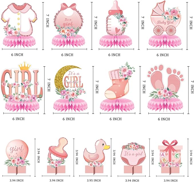 13PCS Pink Honeycomb Baby Shower Centerpieces – Table Decorations for Girls & Gender Reveal