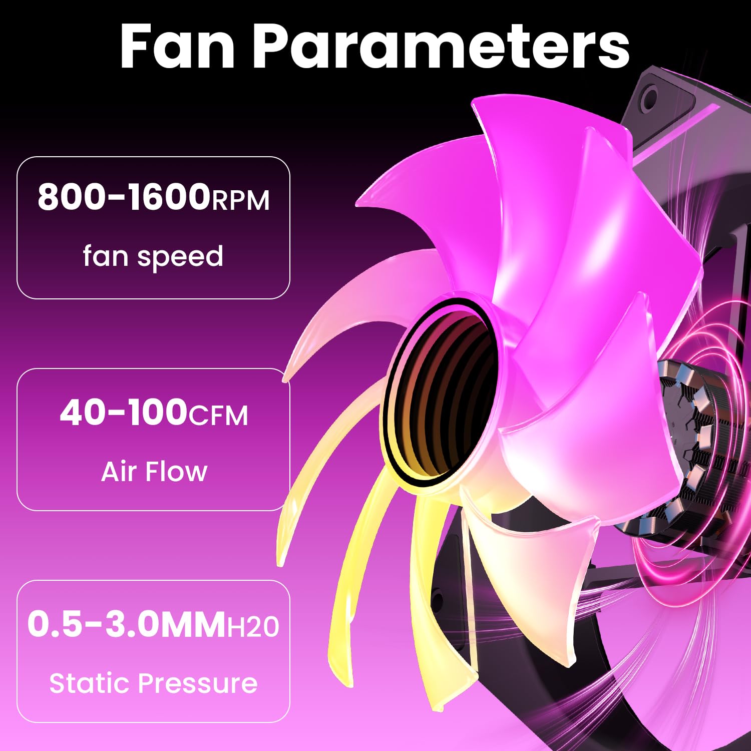 Adjustable Speed: 650–1600 RPM (±10%) with PWM control for efficient cooling
