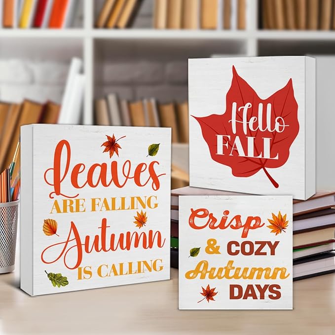 Fall Wood Block Signs (3-Piece Set)