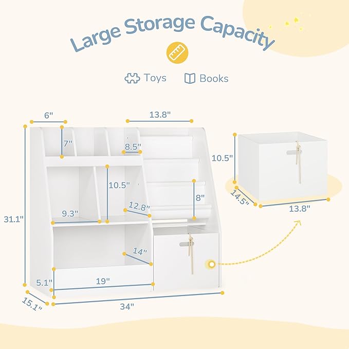 • Product Size and Wide Application: 34″ L x 31.1″ H x 15.1″ W; Suitable for children to enhance their organization skills; Suitable for playrooms, living rooms or classroom