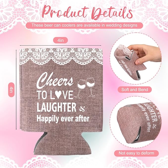 • Easy to Match: the wedding beer can cooler sleeves are mainly available in elegant shades of white and flaxen, effortlessly blending with your wedding theme; The versatile color scheme adapts to any setting, making your event even more unforgettable