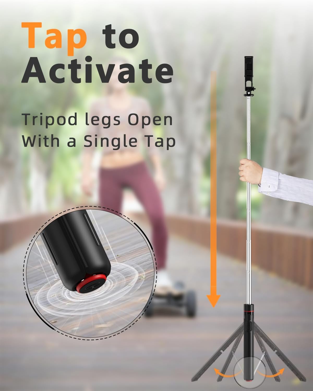 Quick One-Press Pop-Up: Instantly open the tripod with a single button press. The legs spring open automatically for fast and convenient setup.