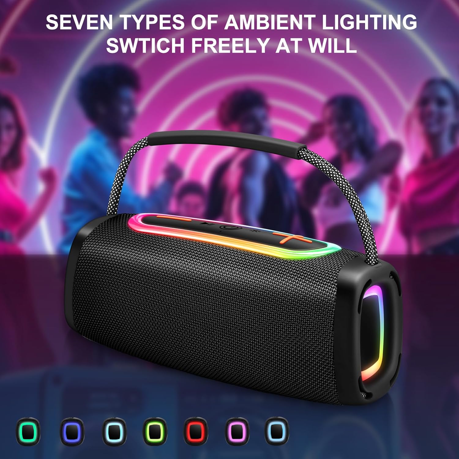 Long Playtime & Stable Bluetooth: Built-in 6000mAh battery provides up to 36 hours of continuous playback. Bluetooth 5.4 ensures fast, reliable connections up to 33 feet. Multicolor LED lights can be turned off to conserve battery. Actual playtime varies with volume, audio content, and usage.