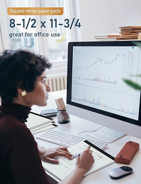 • Cardboard Backing: The hardboard back of the grid paper notebook 8.5 x 11 made of quality card stock material for writing support. The sturdy backing of the grid paper notepad paper offers additional stability while you write, draw, and design, 8-1/2 x 11 graph paper pad allows you to take notes without a table or desk to lean on.