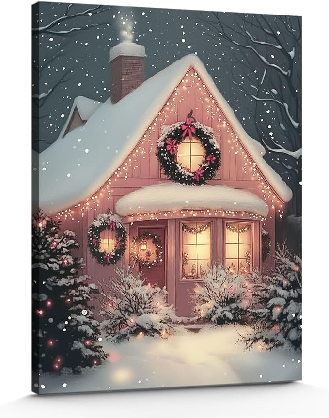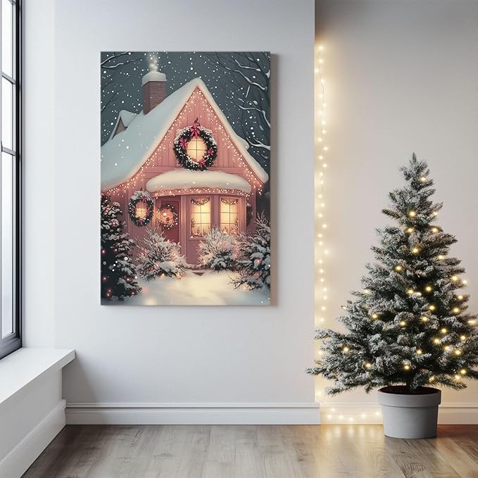 • Perfect for living rooms, bedrooms, or entryways, this artwork adds a magical holiday atmosphere with its vintage-inspired charm and soft pink accents.