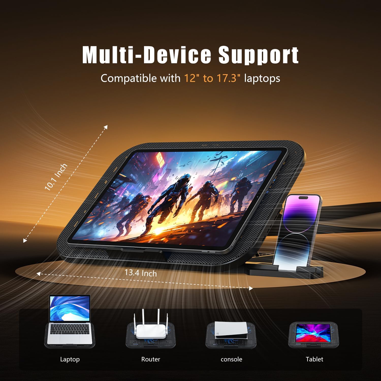 Durable Construction with Phone Holder: Built from heat-resistant ABS and sturdy stainless steel mesh for long-lasting durability and excellent heat dissipation. Includes a built-in phone holder for hands-free use during work, study, or entertainment.