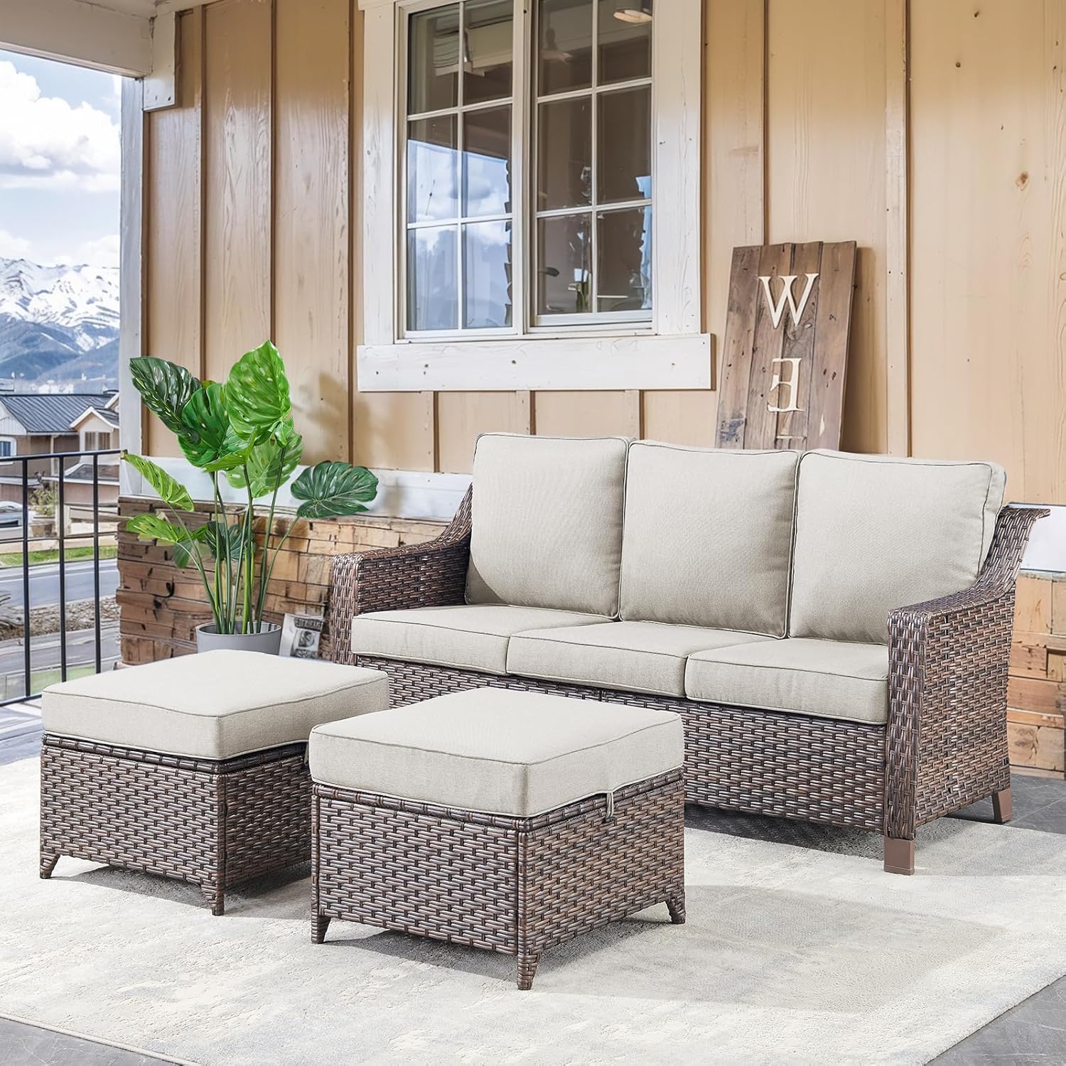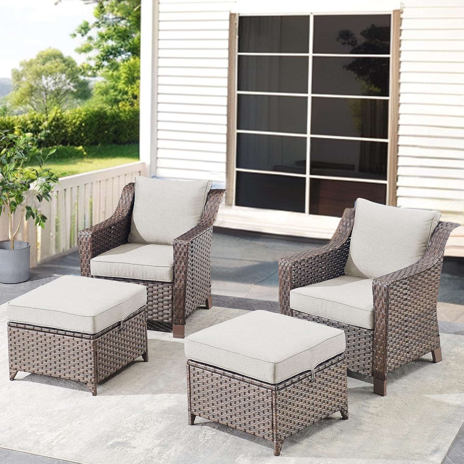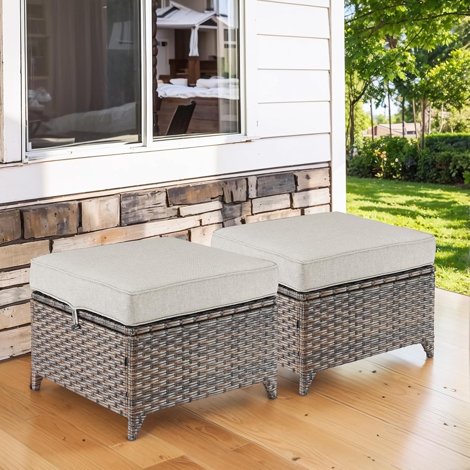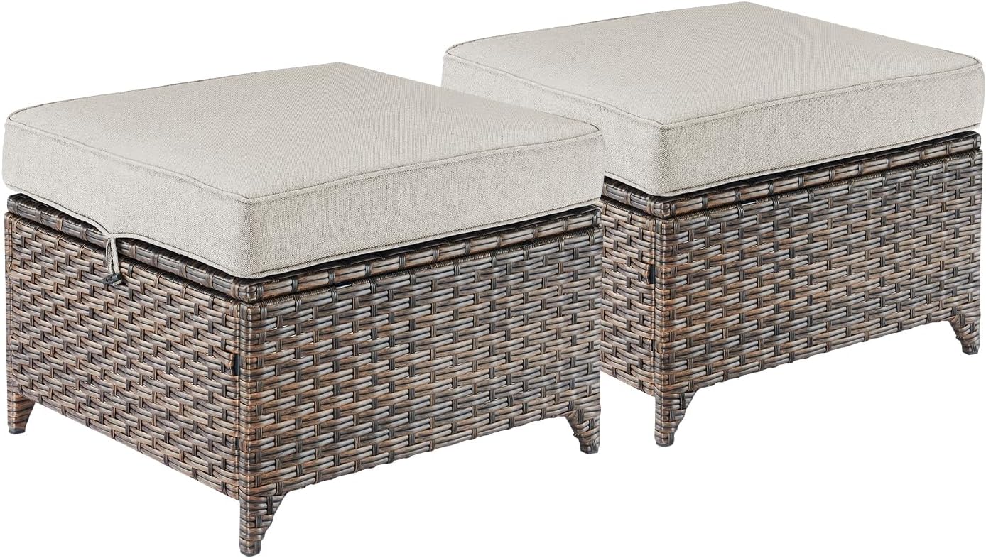 - FOUR SEASONS PATIO FURNITURE SETS: This outdoor comfortable and durable wicker ottomans will be widely used, fit any big or small setting and decorate your backyard, deck, balcony, porch, apartment, poolside and grand garden. Also, we offer the high-quality matching fire pits so you can enjoy the chair set all year round, from spring to winter