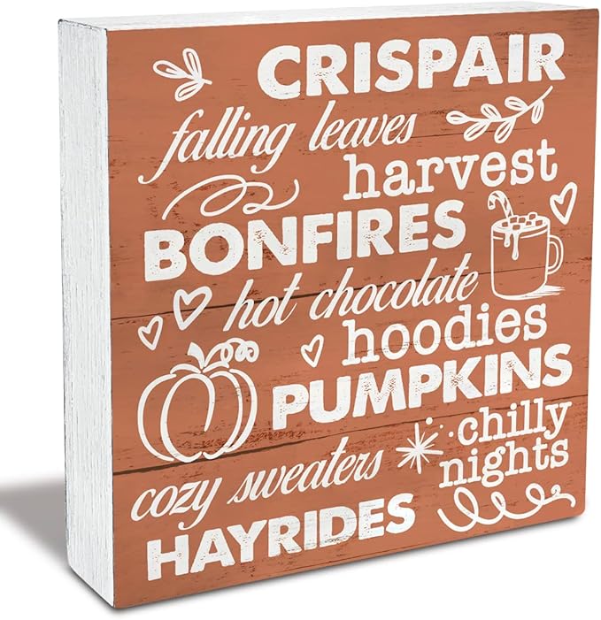 Rustic Fall Favorites Wood Box Sign (5×5 Inch)