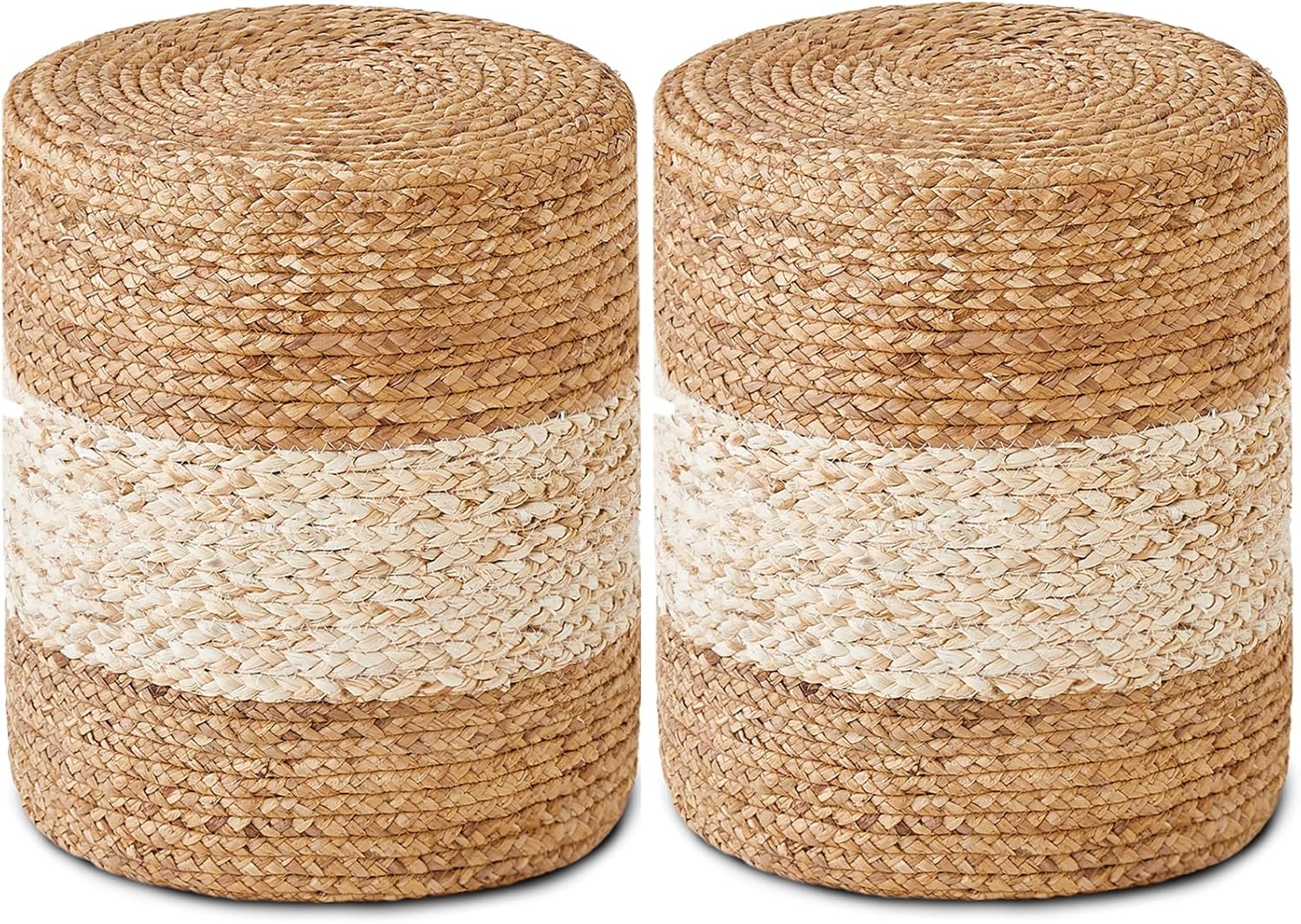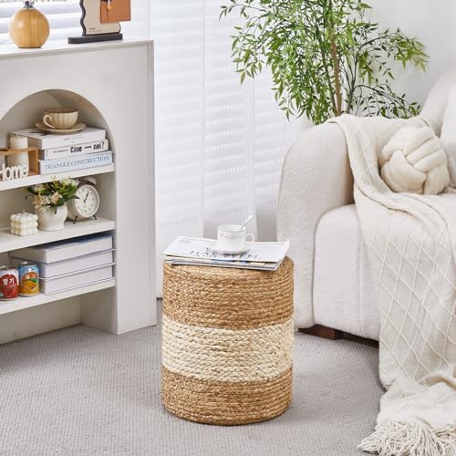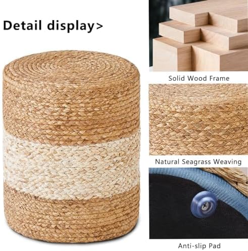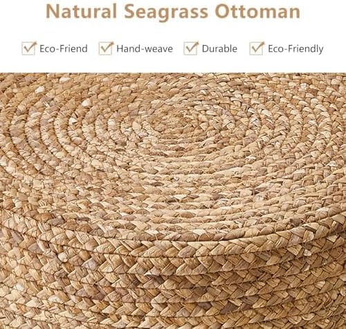 - 100% Handmade Cover: Pouf Ottoman is made of sustainable, and durable natural seaweed & corn husk braid.High-end sewing technology makes natural materials more tight and not easy to open