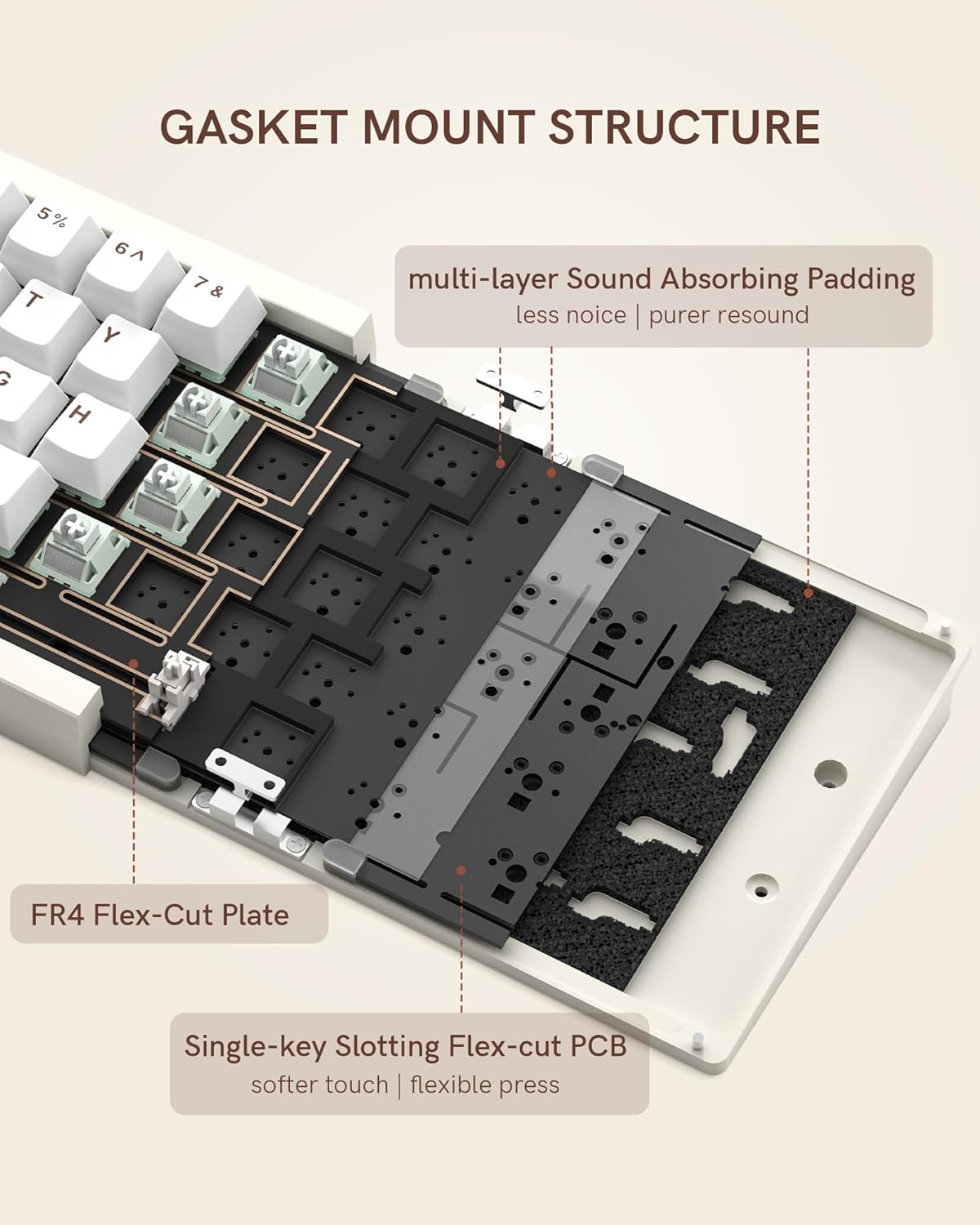 Enhanced Typing & Sound: Gasket mount, multi-layer sound-absorbing foam, and factory-lubed linear switches provide soft, quiet, and fatigue-free keystrokes with durable PBT keycaps.