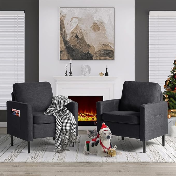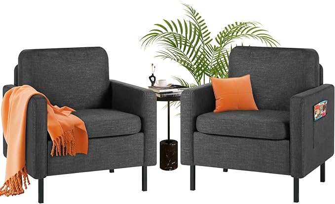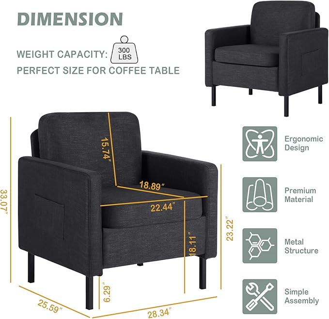 • [Appearance Highlights] The rounded design of the backrest makes this accent reading chair more unique and fashionable, bringing a soft feeling. The armrest side pocket design allows for the placement of magazines, remote controls, and more, keeping everything you need at your fingertips.